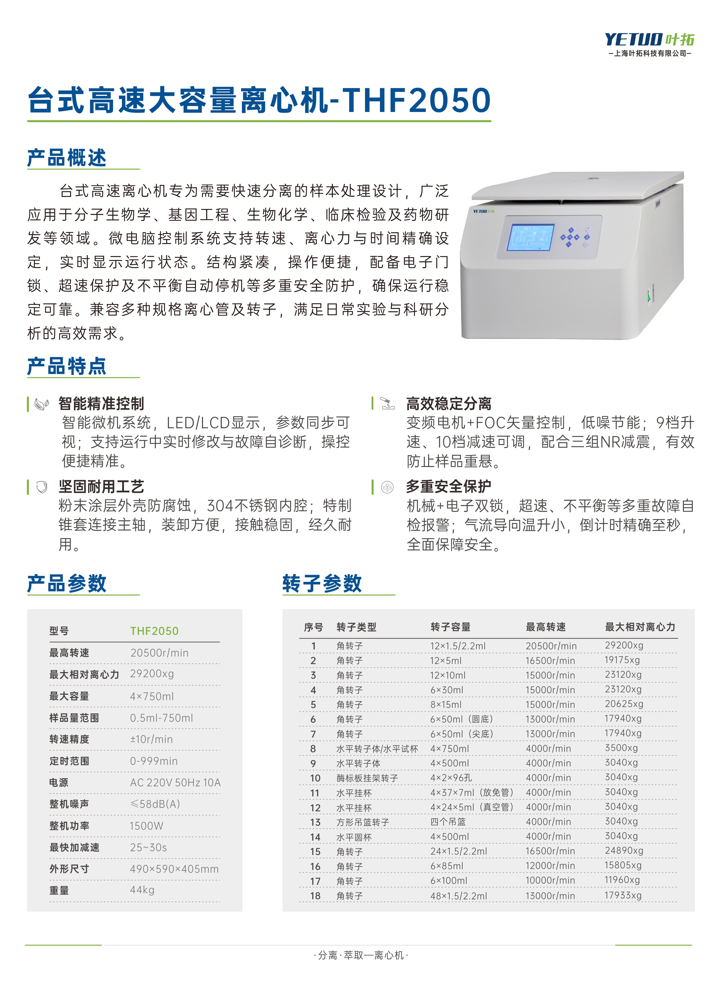 葉拓 THF2050 臺式高速大容量離心機詳細參數(shù)