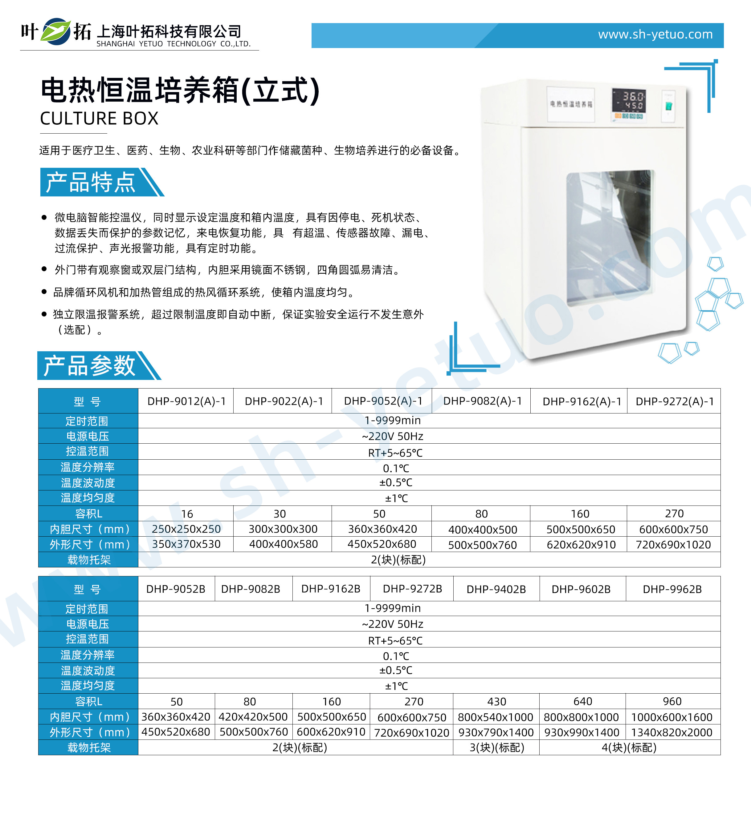 葉拓 DHP-9082A 立式電熱恒溫培養箱產品特點