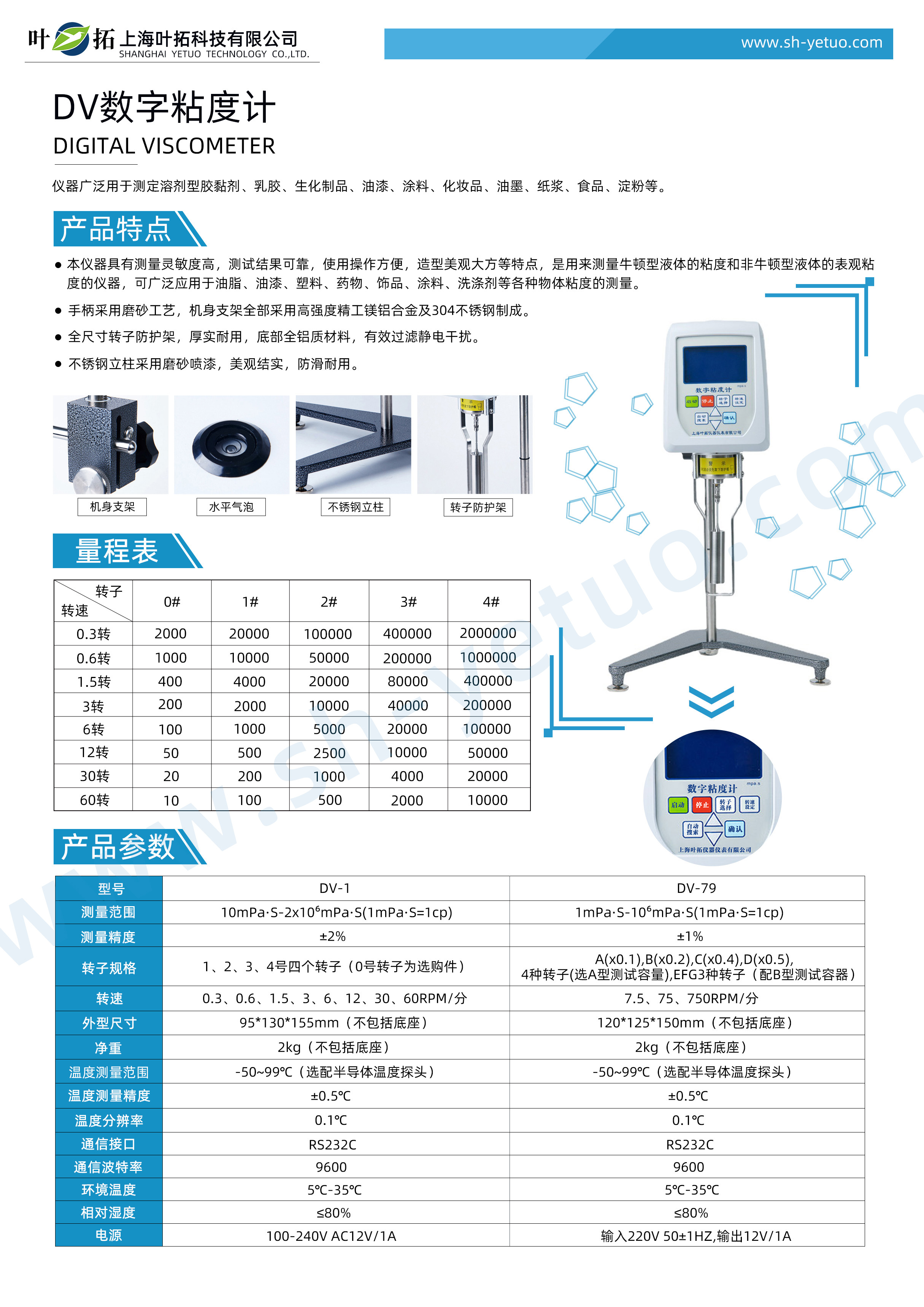 葉拓 DV-1 數顯旋轉粘度計詳細參數