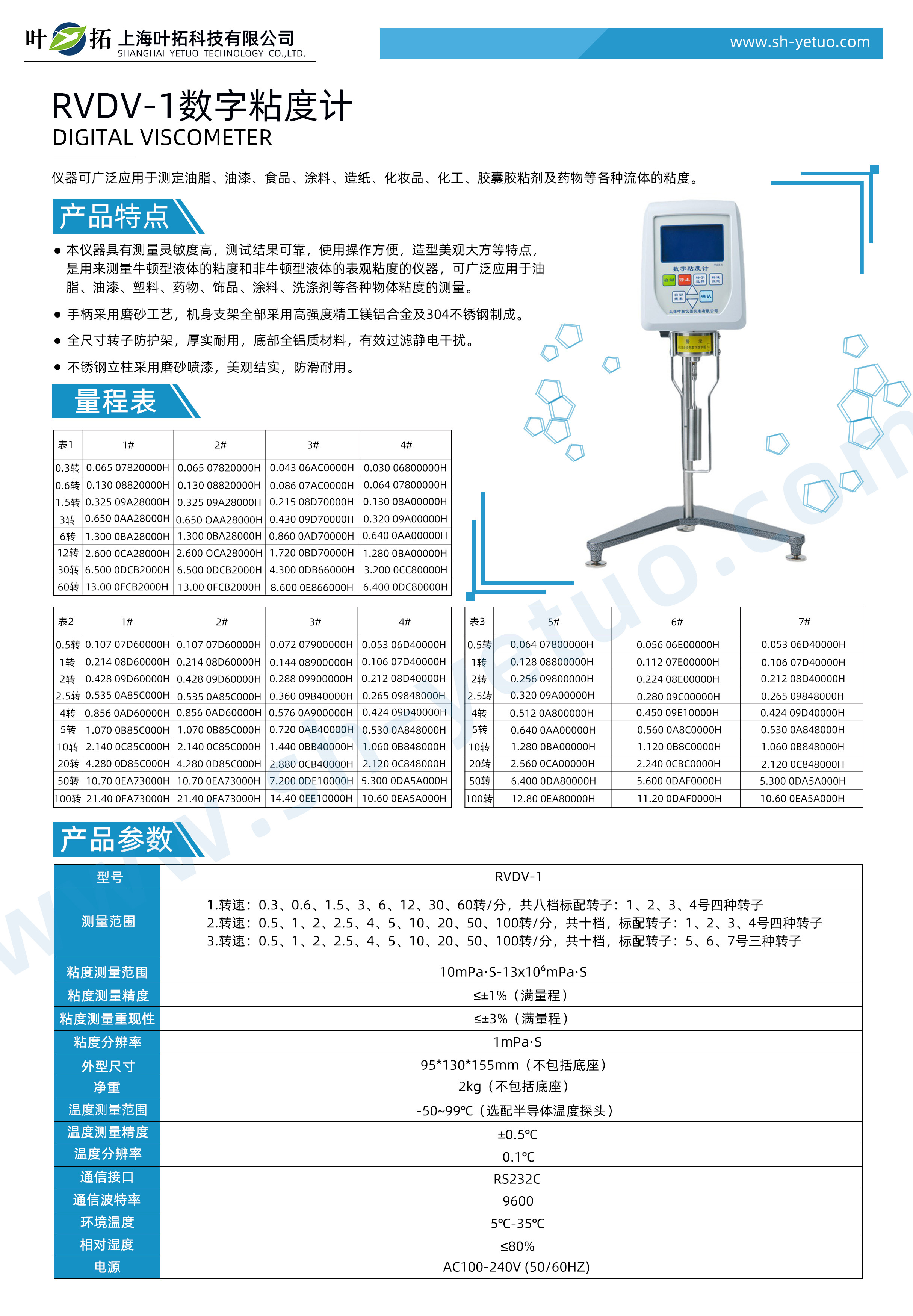 葉拓 RVDV-1 數(shù)顯旋轉(zhuǎn)粘度計詳細參數(shù)