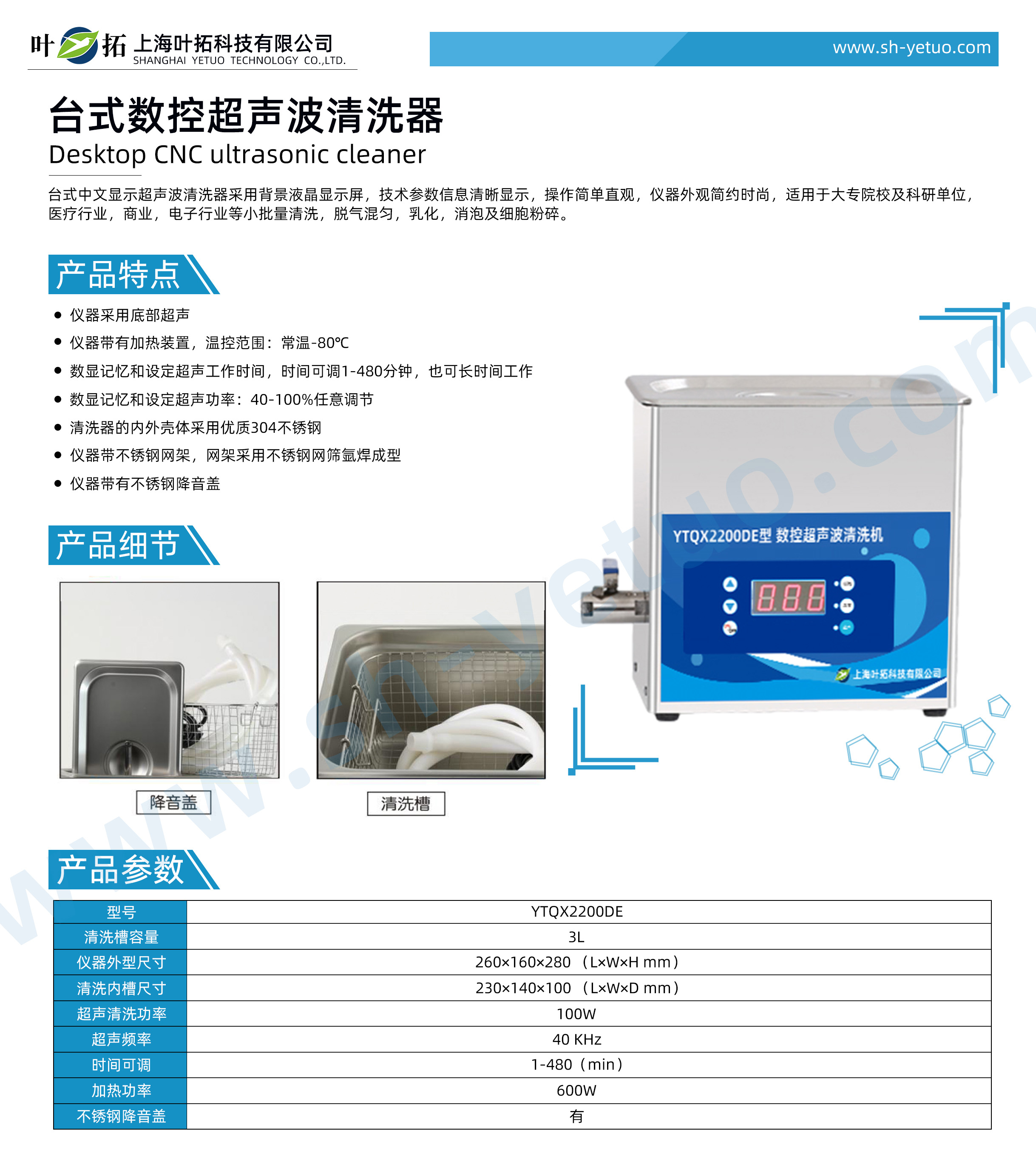 葉拓 YTQX2200DE 臺式數(shù)控超聲波清洗機(jī)詳細(xì)參數(shù)