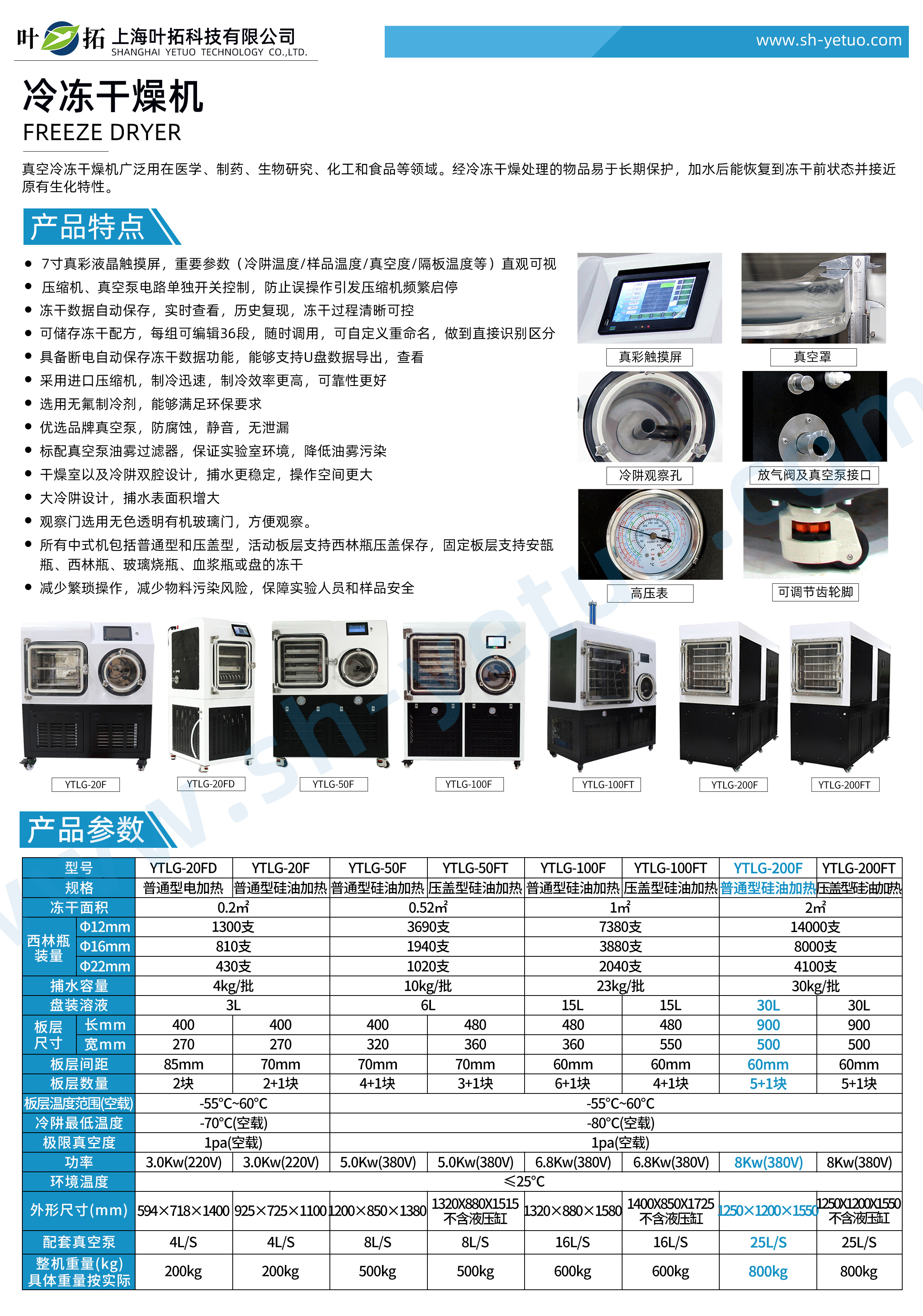 葉拓 YTLG-200F 生產型真空凍干機詳細參數