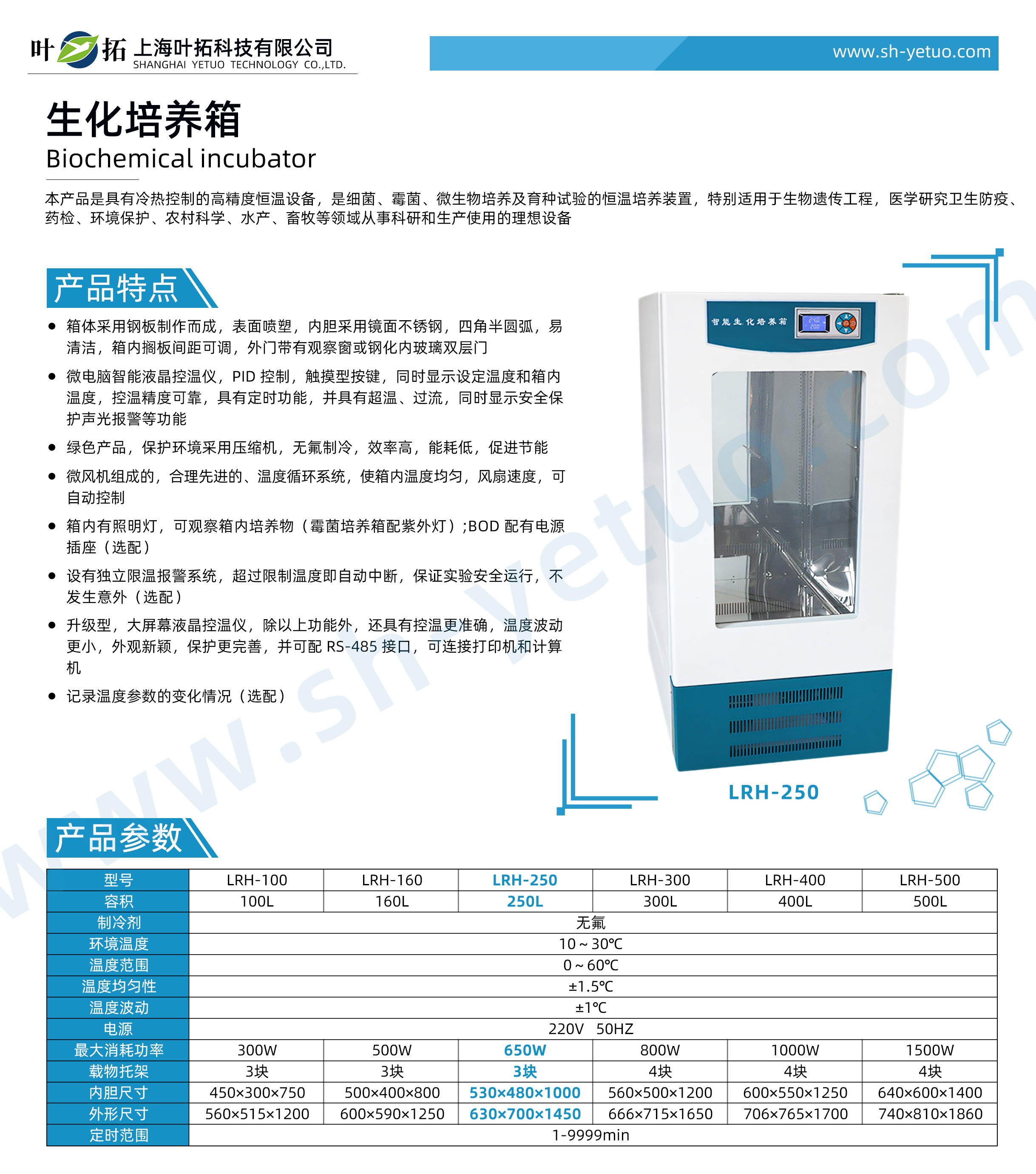 葉拓 LRH-250 生化培養箱詳細參數