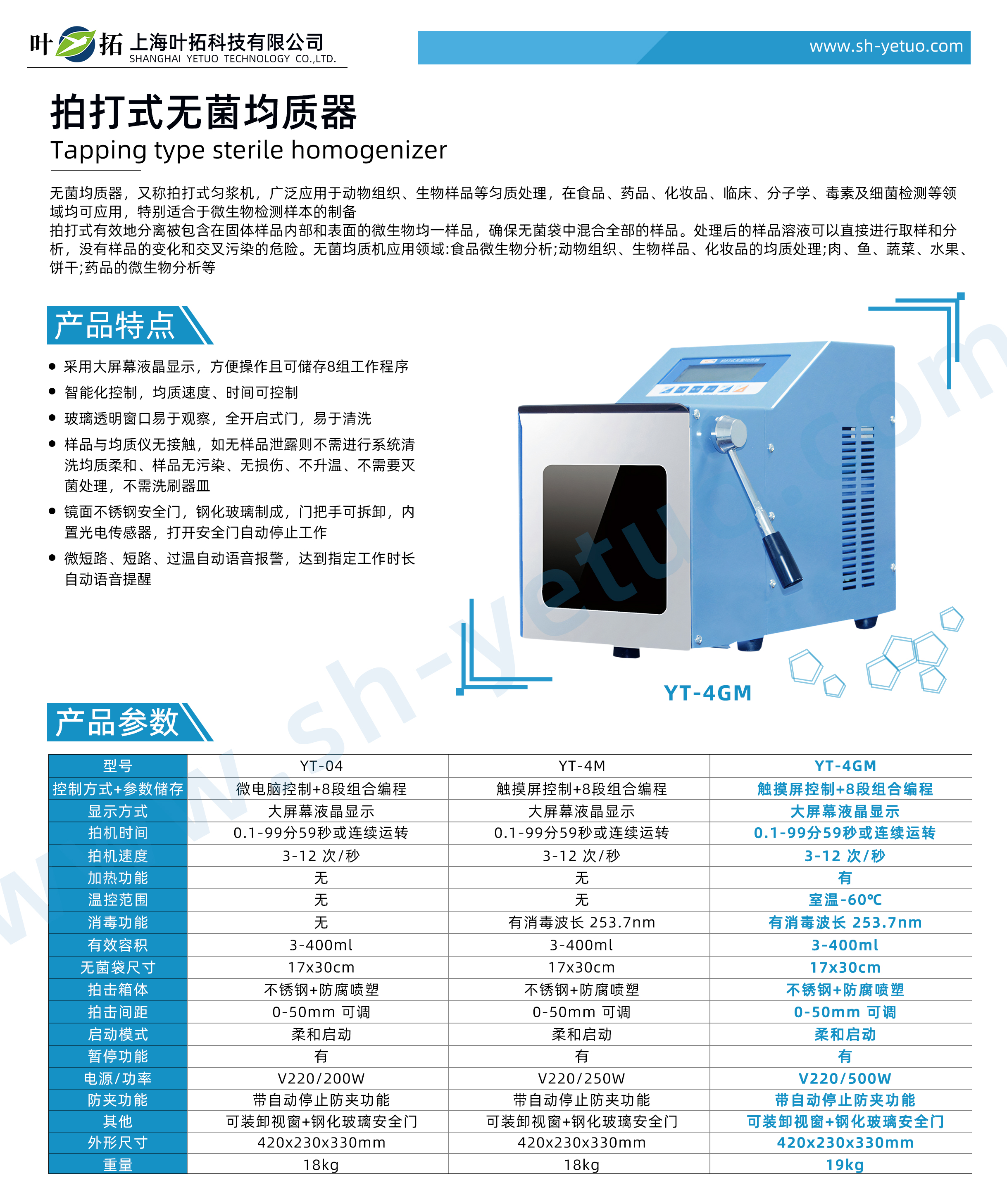 葉拓 YT-4GM 拍打式無菌均質(zhì)器產(chǎn)品特點