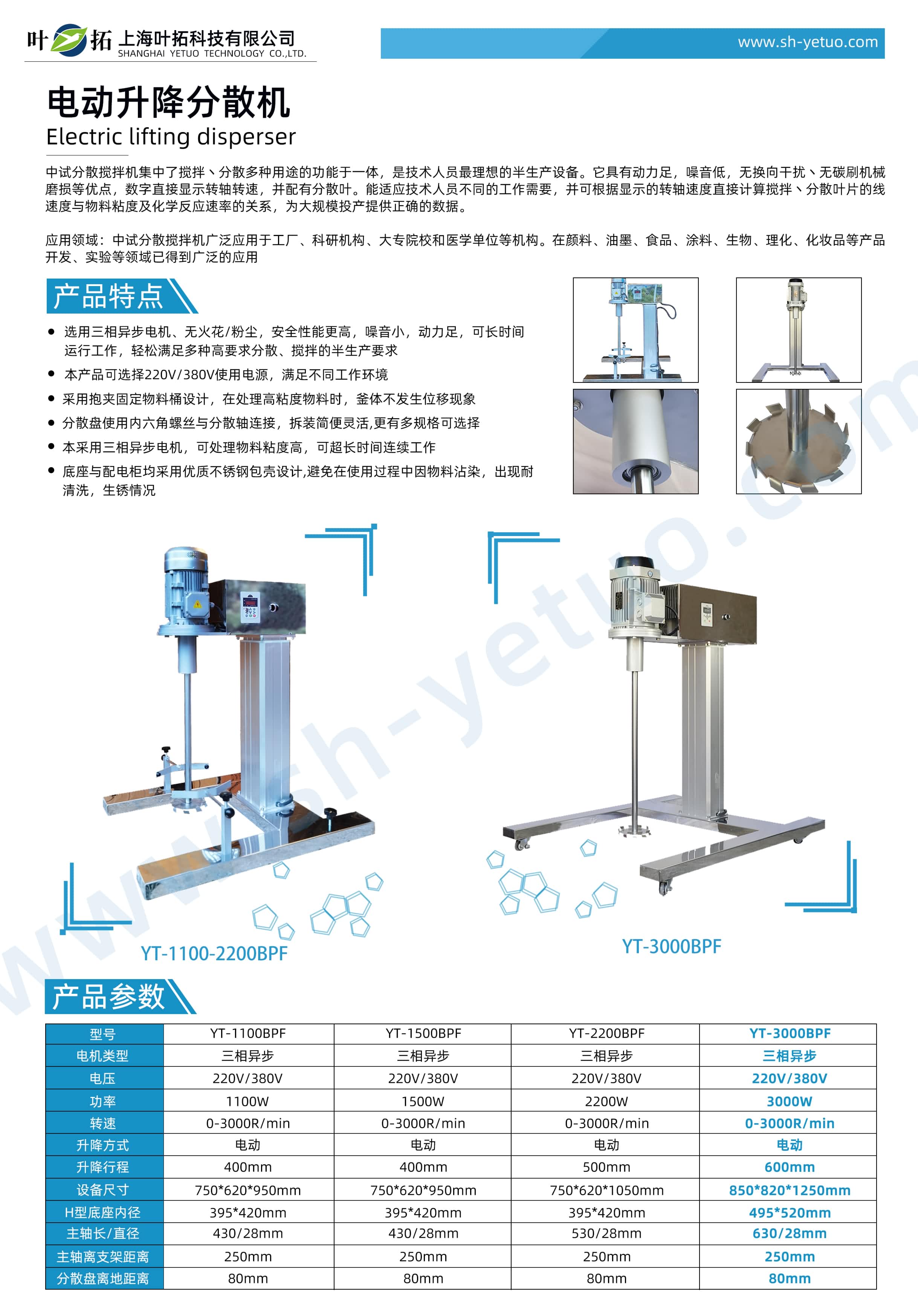 葉拓 YT-3000BPF 電動升降型分散機詳細參數(shù)